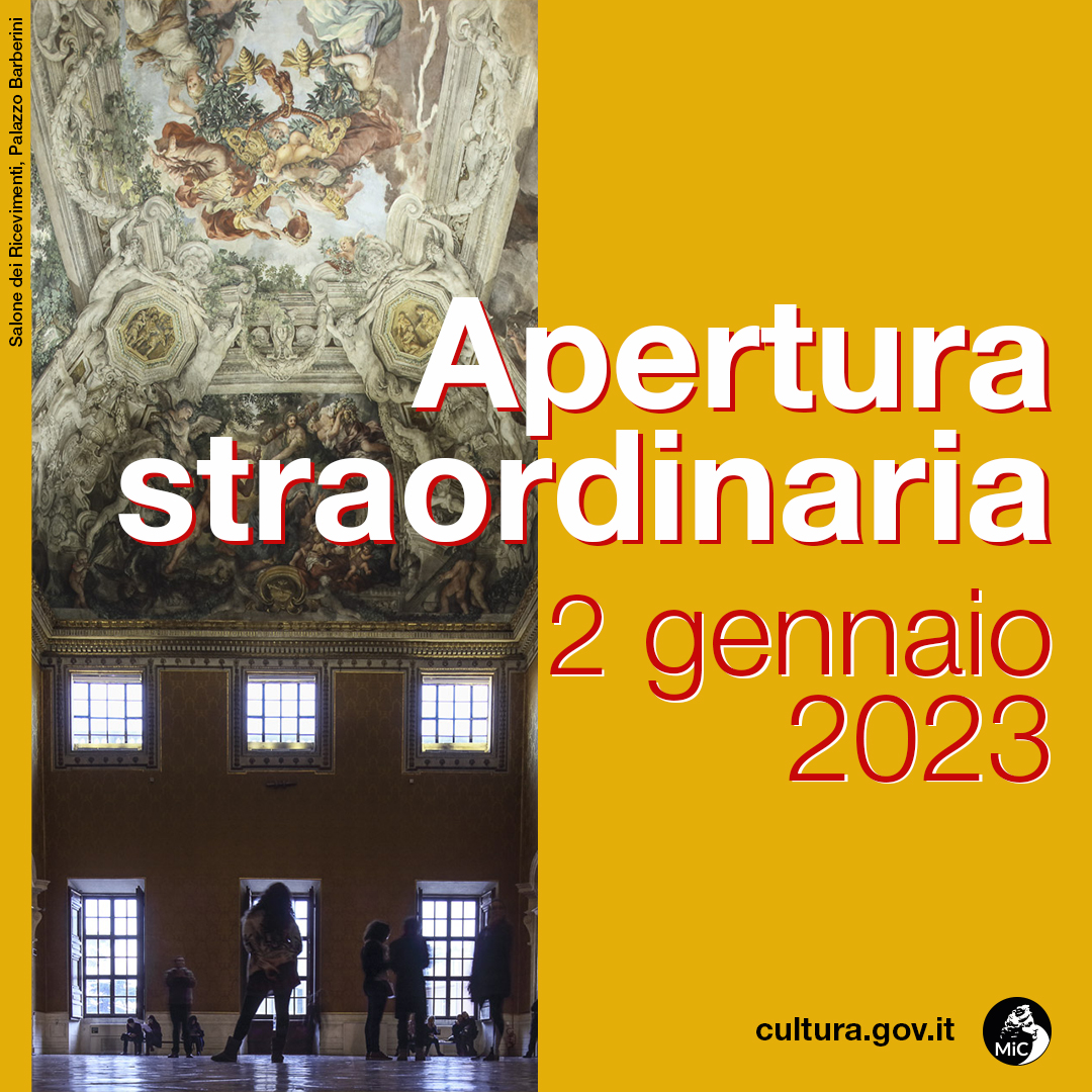 Nel giorno di Capodanno, inoltre, tornerà #domenicalmuseo, l’iniziativa del Ministero della Cultura che consente l’ingresso gratuito, ogni prima domenica del mese, nei musei e nei parchi archeologici statali.